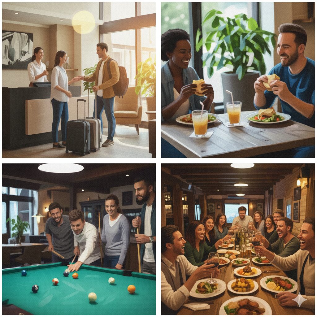 After the bus ride, you check in at the hotel. Then we have a quick lunch together. Afterwards, we meet for billiards and an easy get-together. In the evening, we enjoy a traditional dinner as a group.