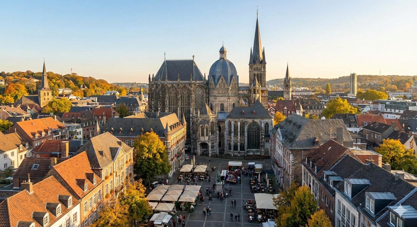 We travel from Utrecht to Aachen by chartered bus. The ride takes around three hours. Aachen has no airport, but nearby options include Cologne, Düsseldorf, Eindhoven, and Brussels.